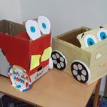 Budući da smo u našoj ustanovi imali saobraćajne znakove, odgajateljice su pripremile aktivnost – vožnja autića. Za autiće nam je bilo potrebno nekoliko kartonskih kutija, plastičnih tanjira i malo mašte.